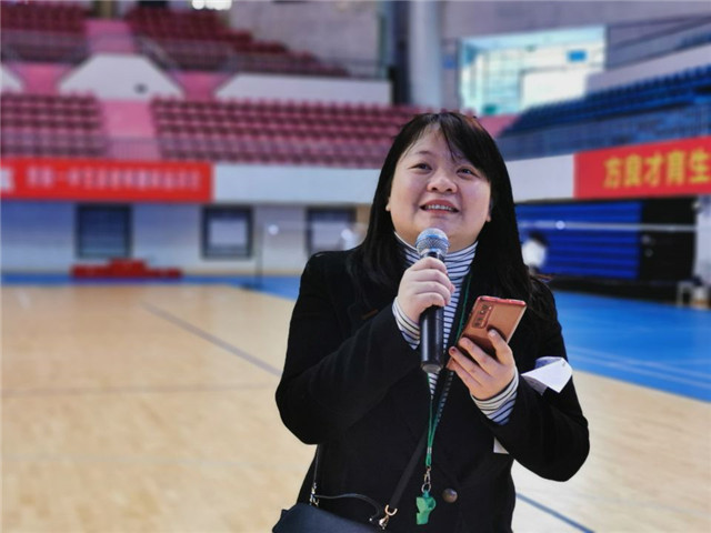 学管处副主任漆传平正在讲解本次运动会的意义