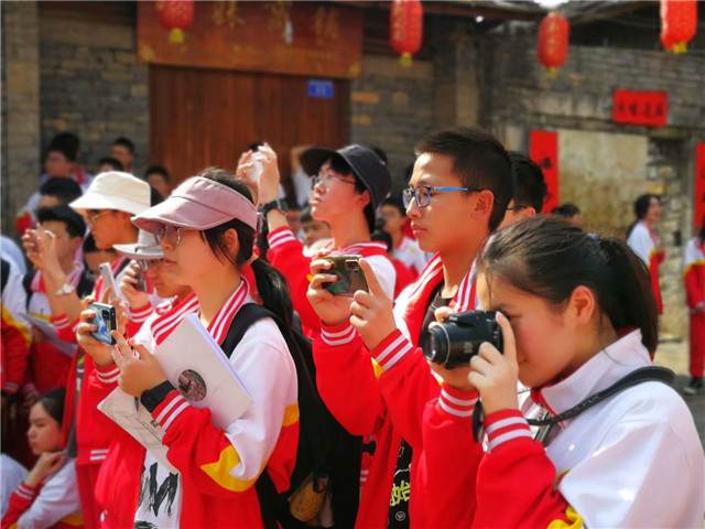 研学中,同学们都认真聆听讲解,仔细做着记录。走在村寨或狭长或弯曲的街巷中,同学们或与当地老乡认真攀谈,了解当地人文情况;或认真观察房屋的结构,探索这些石头建筑几百年不倒的奥秘;或惊叹于曾经的雕梁画栋,醉心于垂花门楼、戏楼前;或被清幽宁静的小院吸引,感慨世外桃源一般的生活;或细读门楣上一副副对联,从中感悟祖先们的做人做事的智慧……徜徉其中。