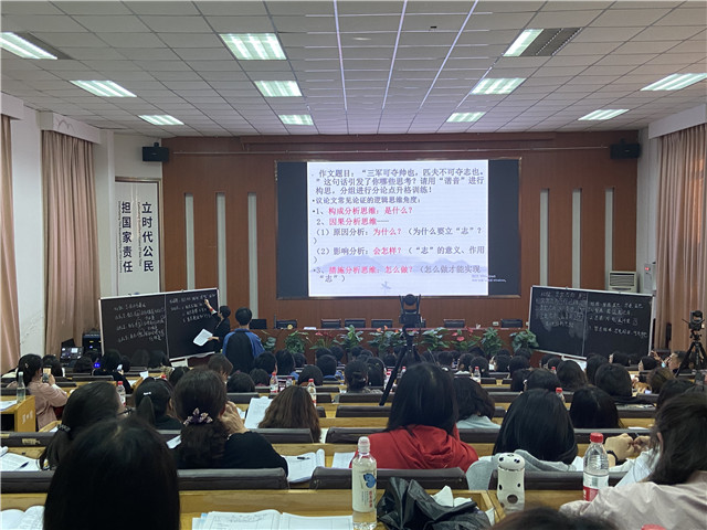 4月29日下午,贵阳市全体高三语文教师参加了在贵州省实验中学学术报告厅举行的“2021届高考语文二轮复习备考专题突破教学探讨”教研活动。我校高三语文教研组备课组长赵楠老师进行二轮复习专题突破微讲座,陈畅老师展示了一堂写作观摩课。