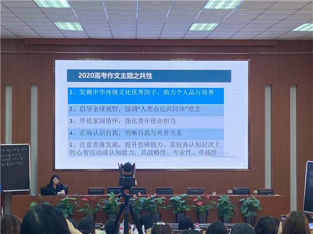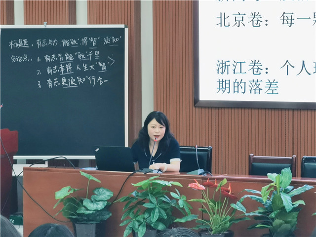 赵楠老师讲座课题为“高考作文序列化——备考有效升格策略”。分别从“明确方向——命题研究”“构建序列——策略研究”“设计教学——方法研究”三个方面进行高考作文指导。