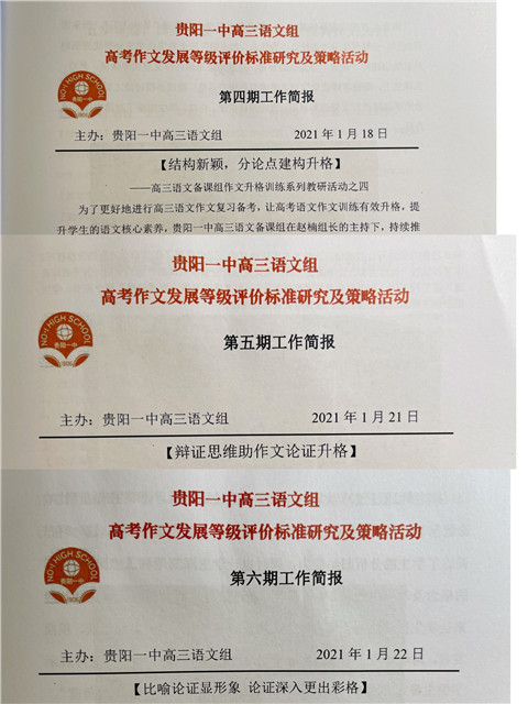 为了迎接本次市级教研活动,贵阳一中高三语文备课组作了4个月的专题备课活动筹备。自2020年12月17日起,在备课组长赵楠老师的组织领导下,2021届高三语文备课组循序渐进地开展“作文升格训练”教学实践活动,八位优秀的语文教师先后为大家带来了精心打造的异彩纷呈的课堂,三位老师撰写了作文教学论文。