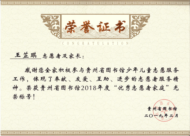 王芷琪同学德智体美劳全面发展,学习成绩优秀,曾被评为“优秀少先队员”、“三好学生”等。在书法、演讲、乒乓球、英语等方面均表现突出,多次获奖。她曾获得过共青团贵州省委、共青团贵阳市委、贵阳市教育局等部门授予的多项荣誉,如“ 2019年度贵州省优秀共青团员”、“2019年度贵阳市优秀共青团员”、“2019年度贵阳市市级优秀初中毕业生”等。