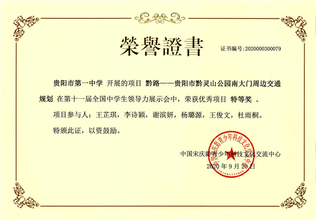 她曾带领同学对贵州省贵阳市道路存在的问题开展研究,提出具体建议,最终得到有关部门积极回应,并获得国家级团体及个人荣誉。