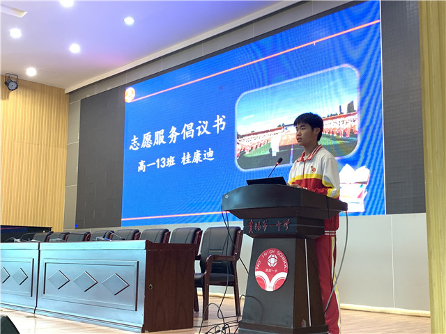 恰逢其时,志愿服务活动在当今社会是实现青春价值是有效途径之一。团委学生会志愿服务部部长桂康迪面向全校师生宣读了志愿服务倡议书。倡议书号召同学们积极加入贵阳一中志愿服务团队,让辛勤奉献成为人生道路的指引明灯,让无私付出成为驱动中华民族伟大复兴的蓬勃力量。