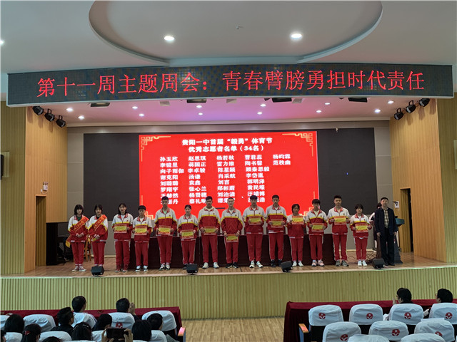 最后由团委徐艺容老师主持颁奖仪式。在贵阳一中首届“毅勇”体育节中,共117名同学作为志愿者,承担了裁判、计时、安保等工作,服务赛事,不计回报,彰显了一中学子的责任与担当,充分体现了奉献、友爱、互助、进步的志愿服务精神,学校为117名志愿者颁发了《贵阳一中志愿服务证》。同时,在我校举行的2020年度优秀团员团干团支部评选中,许多团员团干勤奋学习,乐于奉献,展现出新时代共青团的良好风貌,学校向获得荣誉的团员团干部以及团支部颁发了荣誉证书。