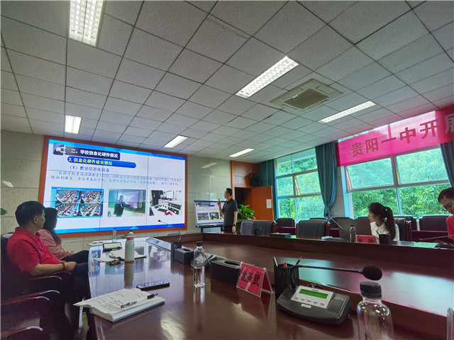 2021年5月14日下午,由高校专家、中央电教馆工作人员组成的专项调研团来到我校,就贵阳市教育信息化标准体系编制专项工作进行座谈调研,实地考察。我校分管信息化建设工作的副校长李莉、信息科研处两位副主任龙圣武和宓成、学科教师代表及信息科研处专职技术人员等参加了调研面谈。