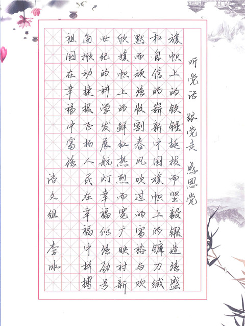 老师们的硬笔书法和粉笔板书有的飘逸洒脱、端庄秀丽,有的独具创新、赏心悦目,有的刚健遒劲、独具魅力,各有千秋。现将部分优秀作品分两次进行展示。