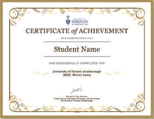 学生将获得多伦多大学士嘉堡校区绿色通道颁发的结业证书;