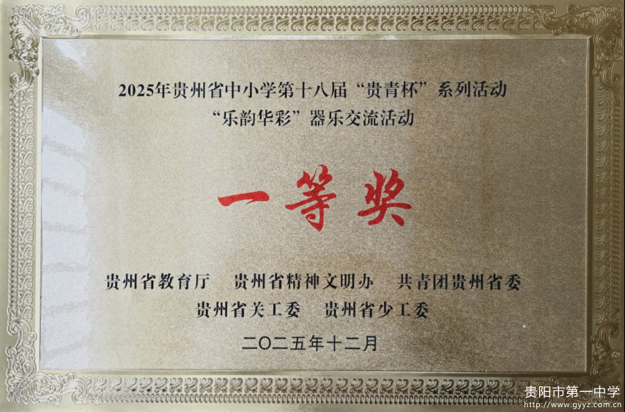 2025 年 12 月 13 日上午,由贵州省教育厅主办的 2025 年贵州省中小学第十八届 “贵青杯” 器乐交流展演比赛圆满落幕。贵阳一中艺术中心交响乐团凭借精湛的演奏技艺、默契的团队协作与深厚的艺术底蕴,在全省众多优秀参赛队伍中脱颖而出,荣膺省级一等奖,为学校赢得了崇高荣誉!这一佳绩既是乐团实力的彰显,更是学校践行 “五育并举” 育人方针、深耕 “美育浸润” 工程的生动实践成果。