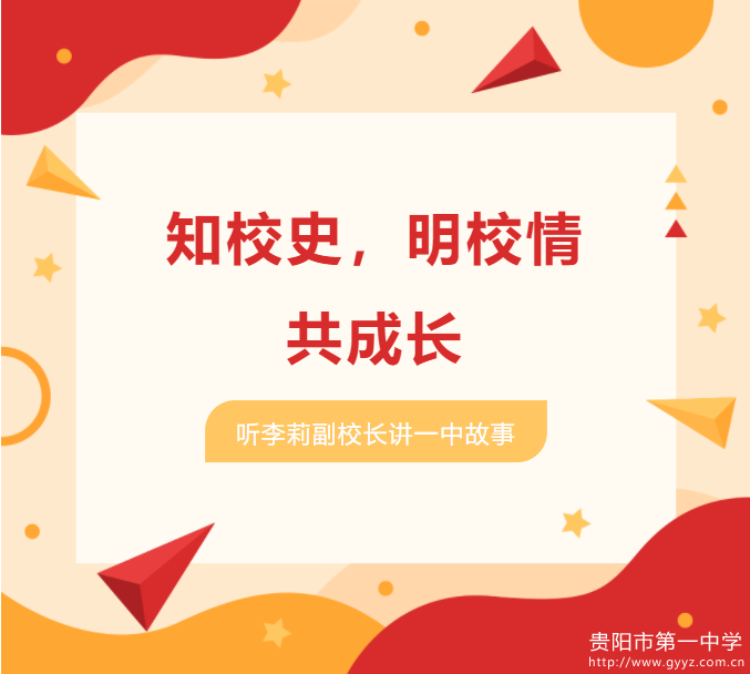作为一中人,我们代表一中、代表贵阳、代表贵州,更是代表中国。作为新时代的青年,我们需传承中国文化、弘扬时代精神,讲好中国故事、讲好家乡故事、讲好一中故事,做文化自信的践行者。今天,让我们一起来听听李莉副校长讲一中故事。