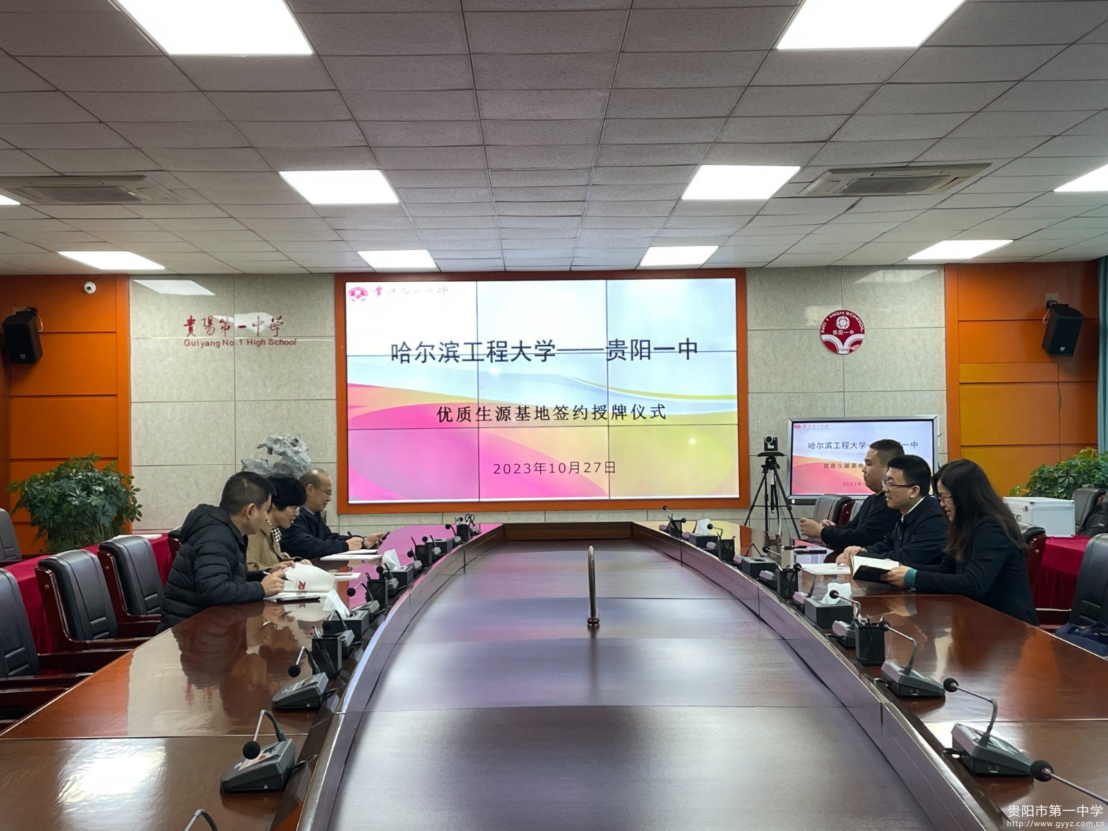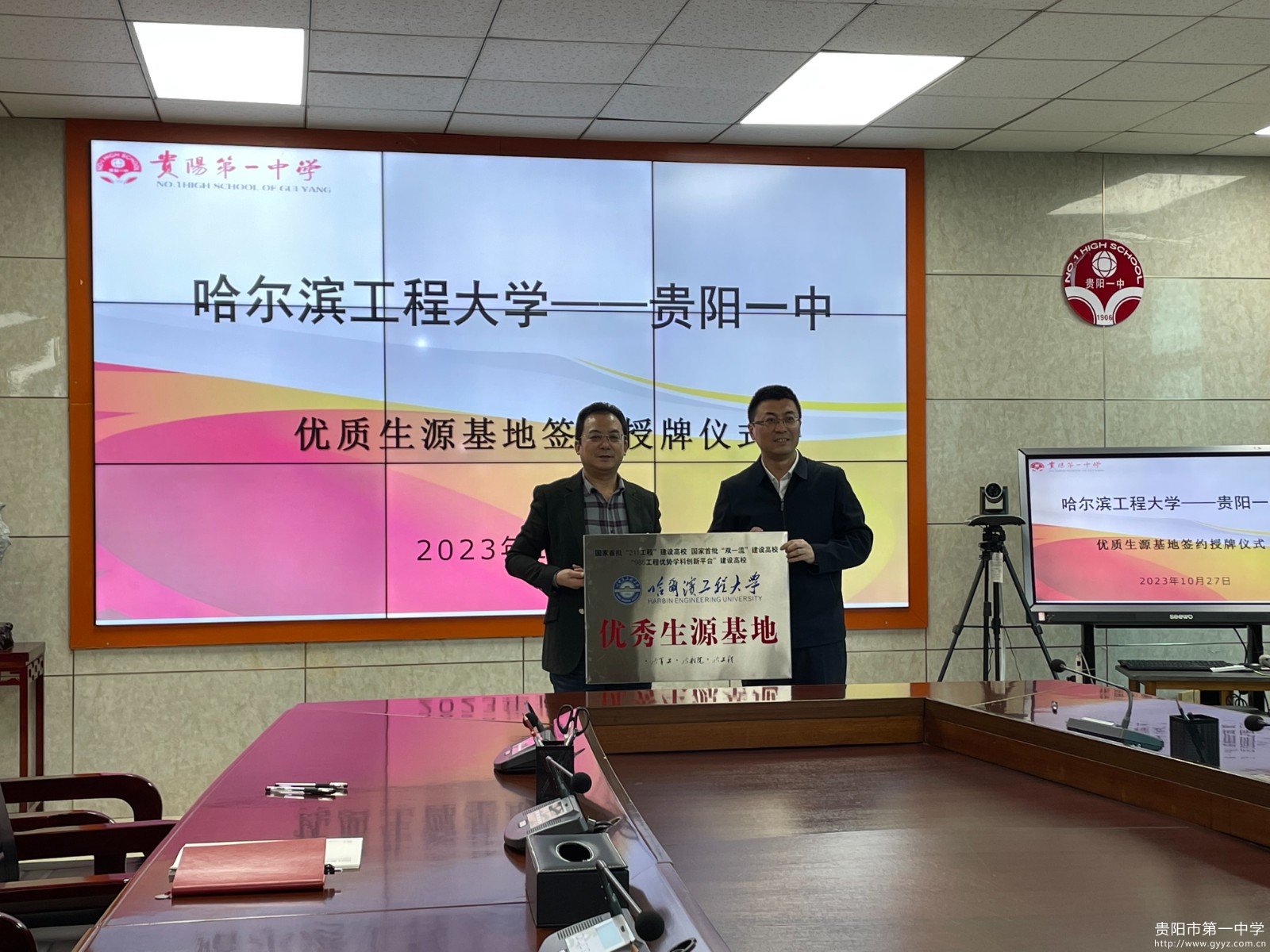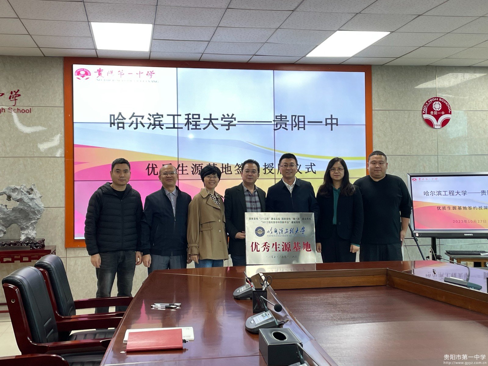 哈尔滨工程大学校长助理、智能科学与工程学院院长赵玉新,智能科学与工程学院副教授原新,以及贵州招生组成员冯赞元在“优秀生源基地”签约授牌仪式上,简要介绍了哈尔滨工程大学的建校历史,三海一核(船舶工业、海军装备、海洋开发、核能应用)办学特色,本科生及研究生就业率,毕业生就业去向及就业主体领域等。赵玉新院长表示,哈尔滨工程大学向来重视人才培养质量,希望未来与贵阳一中加强合作,共同培养优秀人才。
