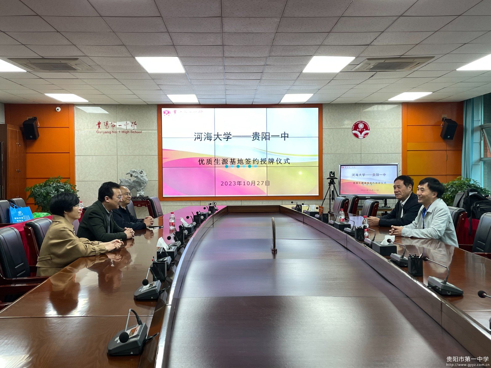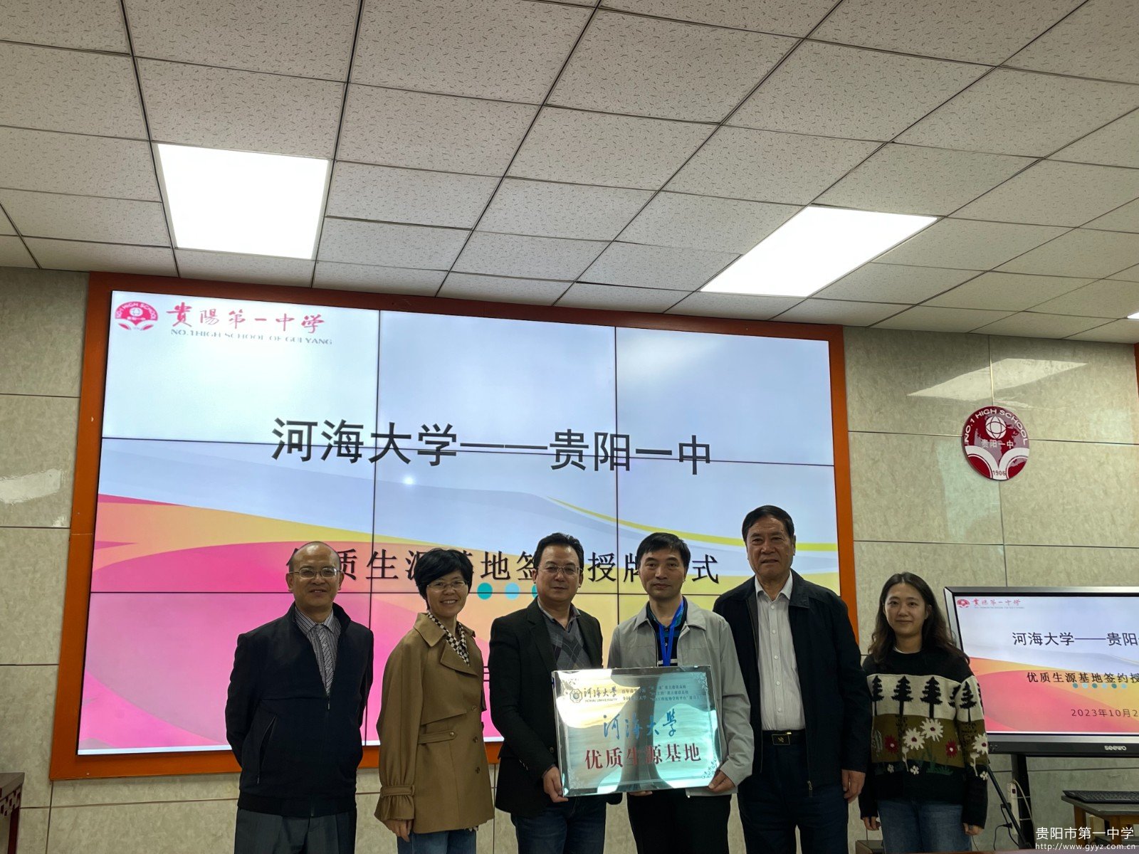 河海大学贵州招生宣传组组长吴卫华、教授尉天骄与我校签署了《河海大学优质生源基地建设合作协议书》,并授予“河海大学优质生源基地”牌匾。