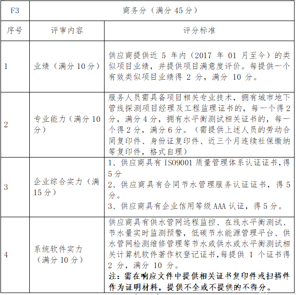 对所有实质响应性响应文件进行技术、商务、价格打分。评标总得分=F1+F2……+Fn