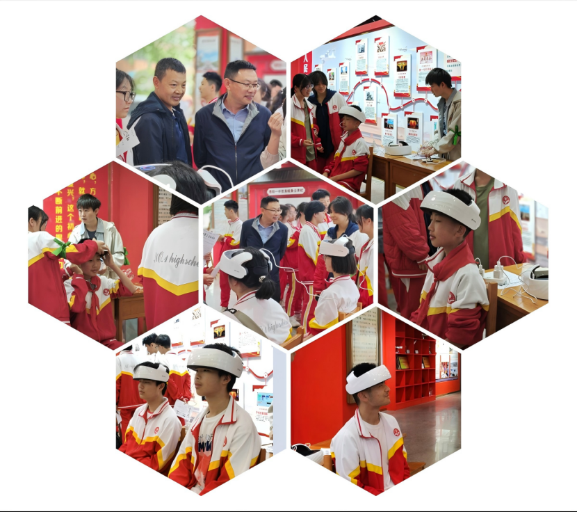 在心脑疗愈站,两位同学正闭目倚靠在椅子上。每个人的前额都佩戴着一台心脑调谐仪,装置会释放出自动变化的温控脉冲,温度沿着额头缓缓渗透进入神经系统,让紧绷的神经如同春日融冰般逐渐舒展。心脑调谐仪是依托中国科学院、北京大学医学部、中国教育科学研究院创新研制的,应用宽幅瞬变调谐独家专利技术以及航天级感应材料,是一款可有效缓解大脑疲劳的高科技身心健康产品。摘下设备的师生们不约而同地舒展着肩颈,有人轻揉着残留着温暖触感的额头感叹道:“就像给大脑做了一场深度SPA。”