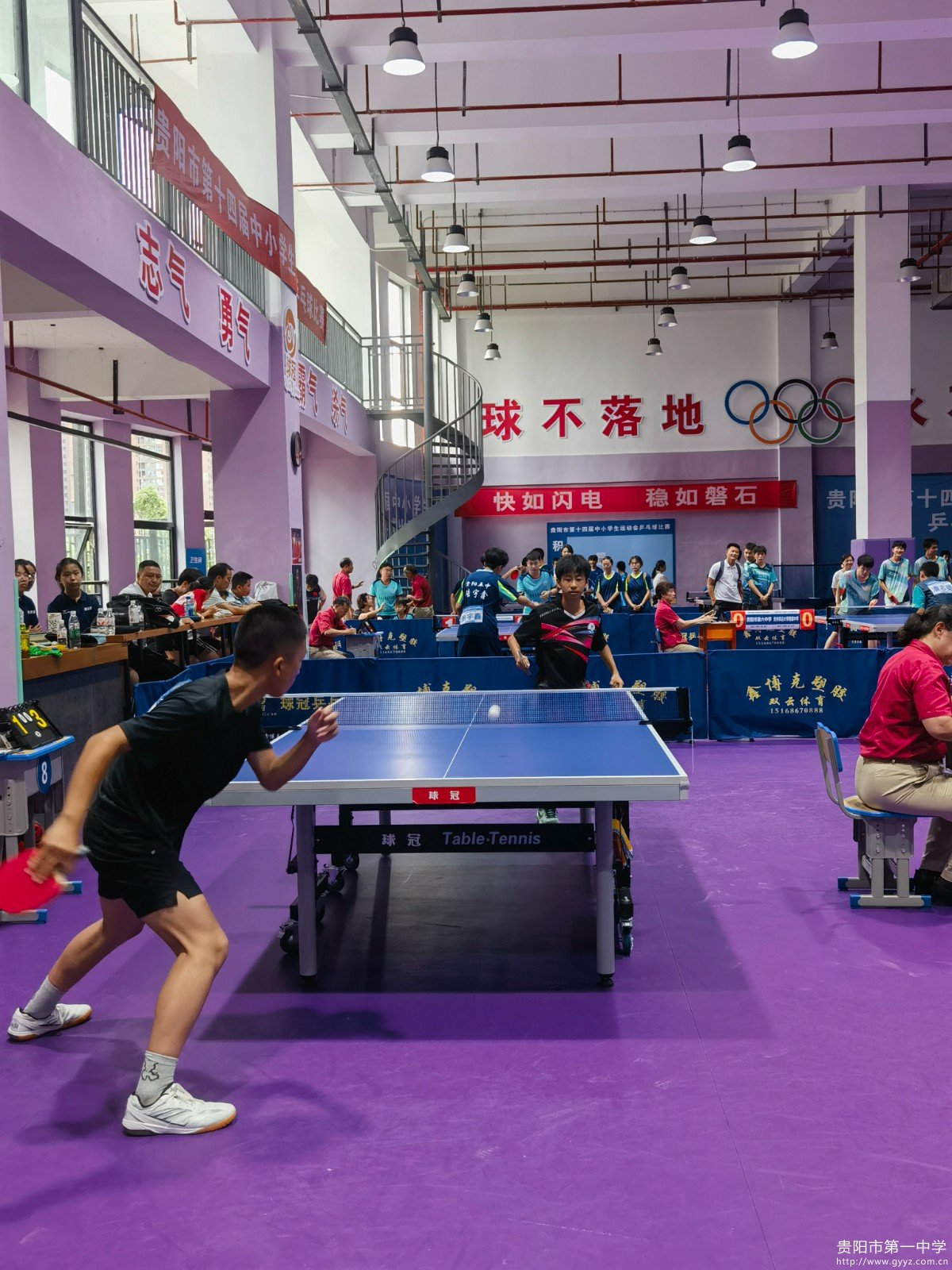 他们发球抢攻、凌厉扣杀、巧妙防守,每一个动作都凝聚着平日训练的汗水与努力。白色小球在球桌上飞速穿梭,直拍、横拍、扣杀、旋转等技巧被运用自如。选手们在场上沉着冷静,在场下互相鼓励,展现了贵阳一中学子良好的精神风貌和体育品德。