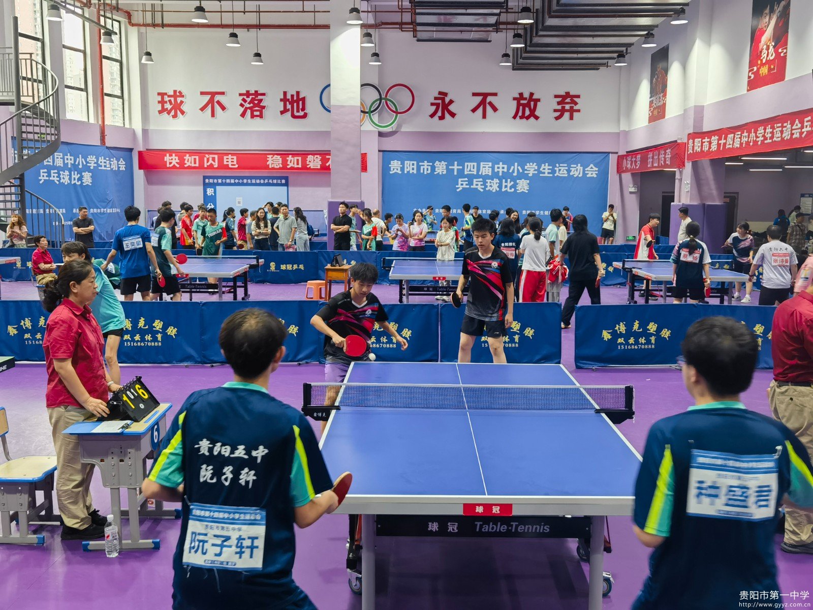 小小银球在空中划出一道道优美弧线,清脆的击球声在比赛馆内回荡,每一记扣杀都是青春的回响,每一次挥拍都是梦想的绽放!贵阳一中校乒乓球运动员们用汗水和技艺书写了属于自己的辉煌篇章。