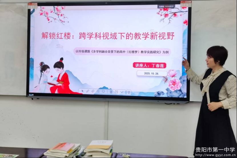 为深化中文系学生对经典文学作品《红楼梦》跨学科教学的认知与实践,提升师范生教学素养及创新能力,贵州师范大学师范学院于2025年10月28日14:00-16:00,在花溪校区GJ6202公共教室举办学术讲座。本次讲座特邀相关领域研究者丁春莲老师主讲,主题为“解锁红楼:跨学科视域下的教学新视野——以市级课题《多学科融合背景下的高中〈红楼梦〉教学实践研究》为例”,中文系2022级、2023级全体学生及相关专业教师参与。