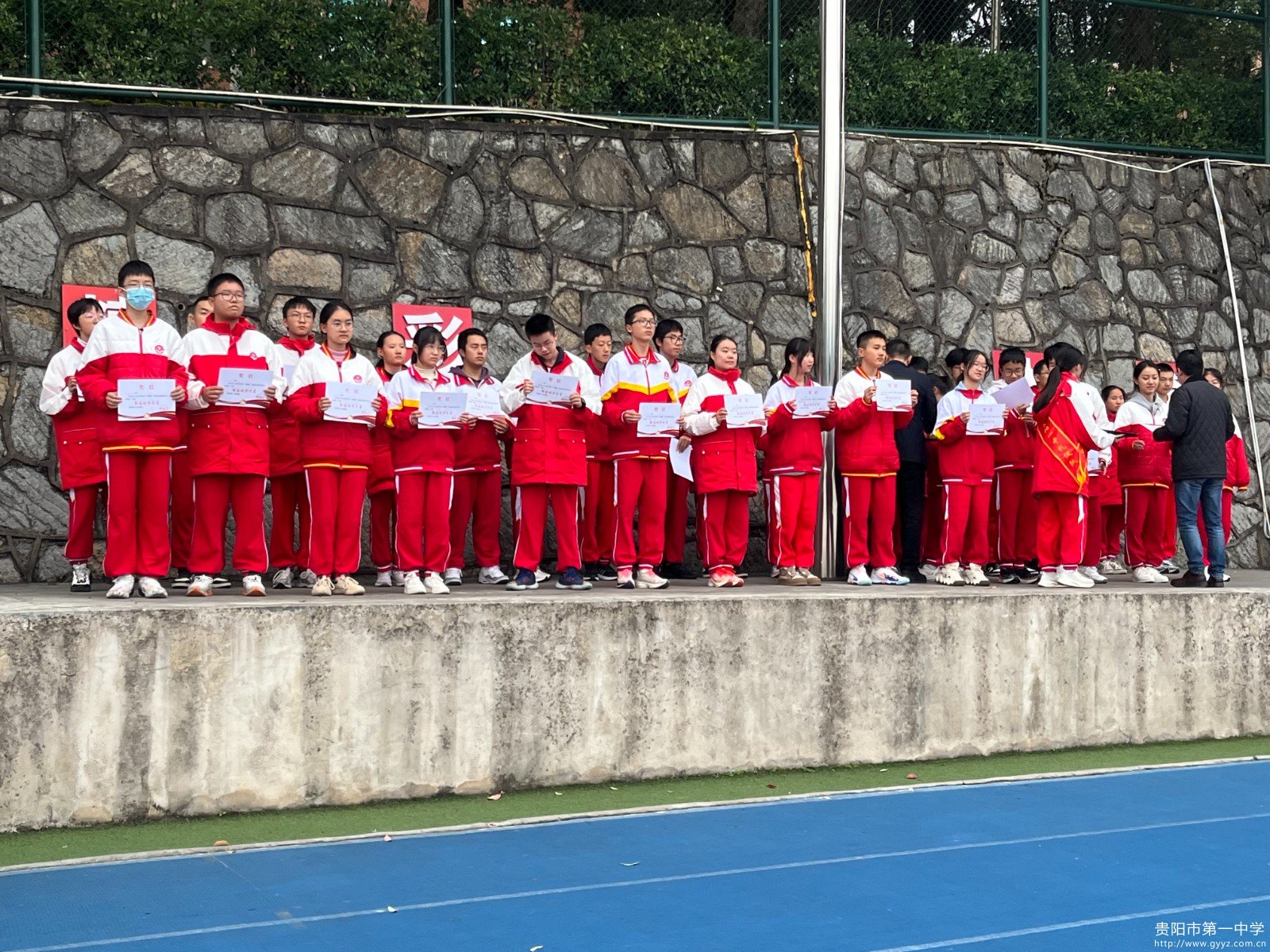 10月29日下午,贵阳一中小田径场掌声阵阵、暖意融融。高一年级全体师生与校领导齐聚于此,开展了一场属于青春与奋斗的表彰大会。本次大会表彰了在学业、品德、行为等领域表现突出的学子,更凝聚起全体高一学生向优秀看齐、向未来奋进的强大力量。