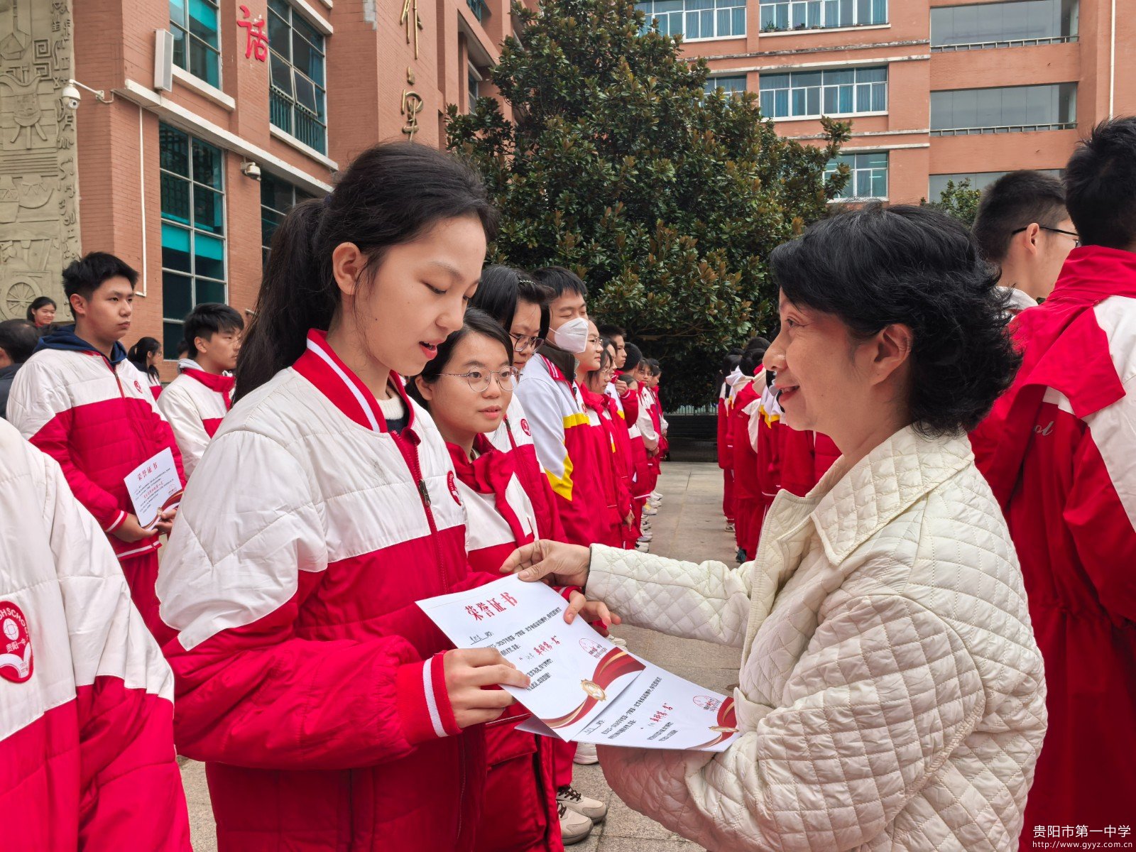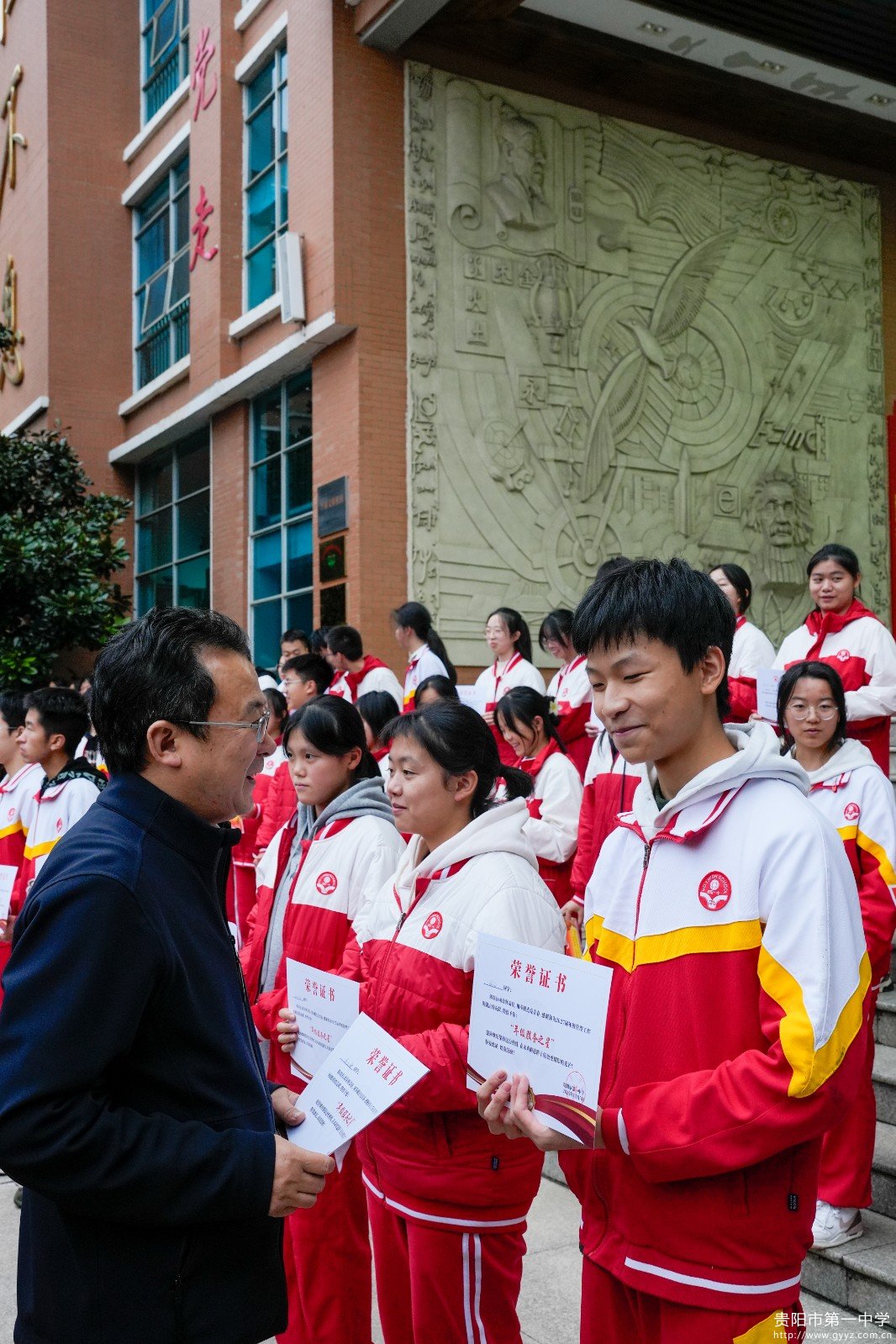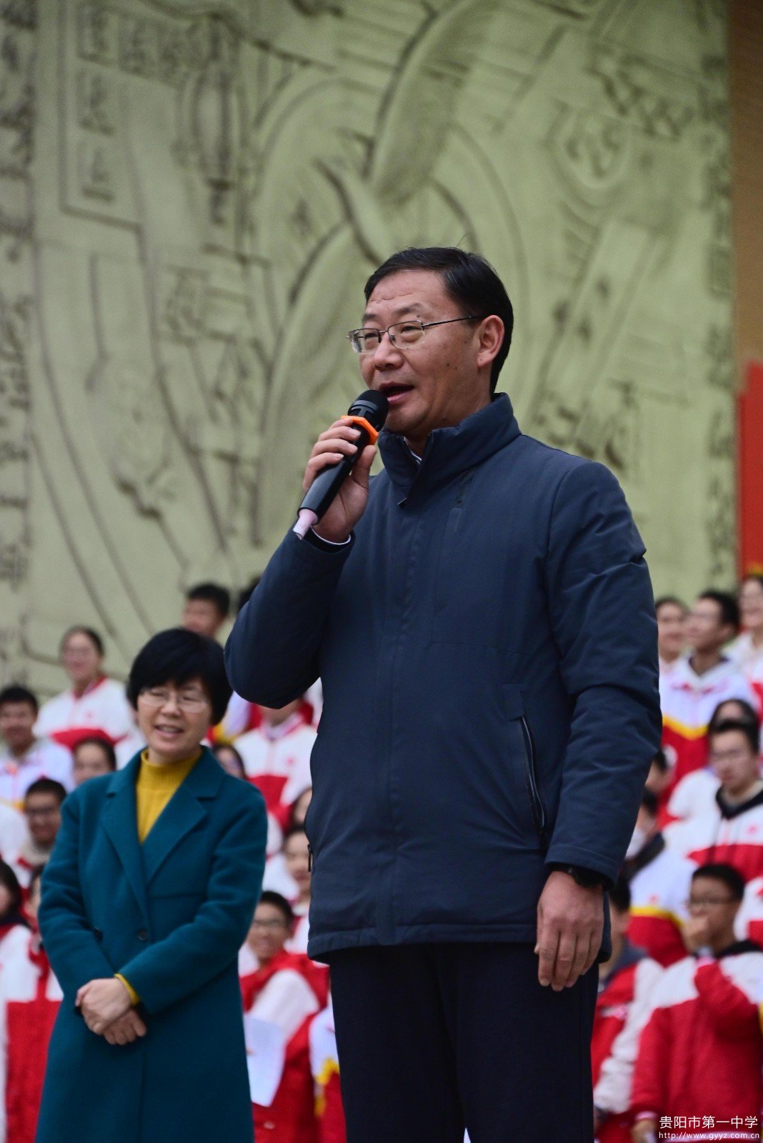 11月5日下午,高二年级全体师生在学校中心广场召开以“表彰先进树榜样,凝心聚力共成长”为主题的表彰大会。高二(19)班杨博同学主持本次大会。贵阳一中党委书记陈章义,党委副书记、校长曾强,党委副书记、副校长张忠华,纪委书记杨玲,副校长谭美金,教学处主任吴斌,教育处副主任陈金锋与全体师生共同回顾两个月以来的学习历程,展望未来发展方向。