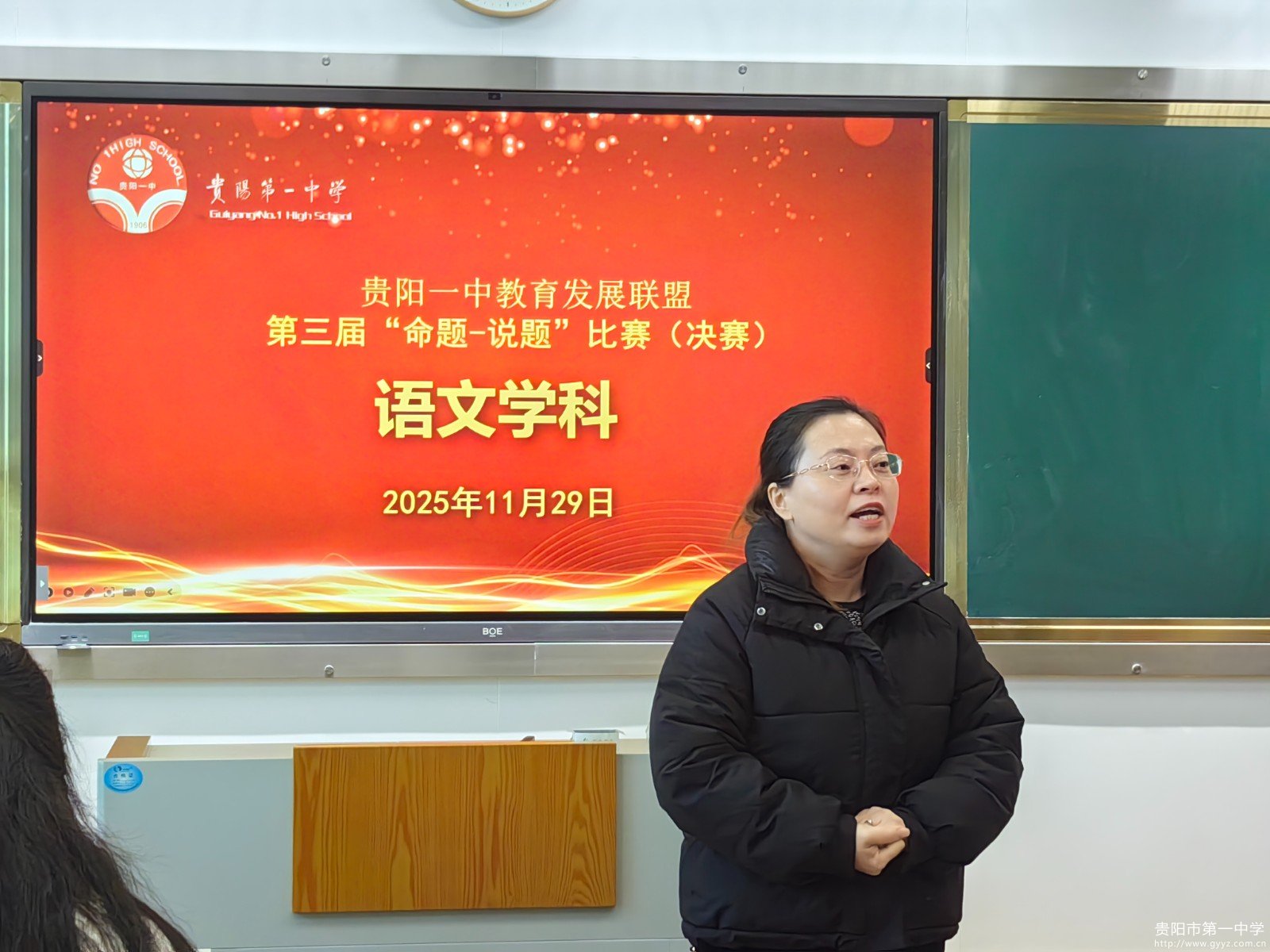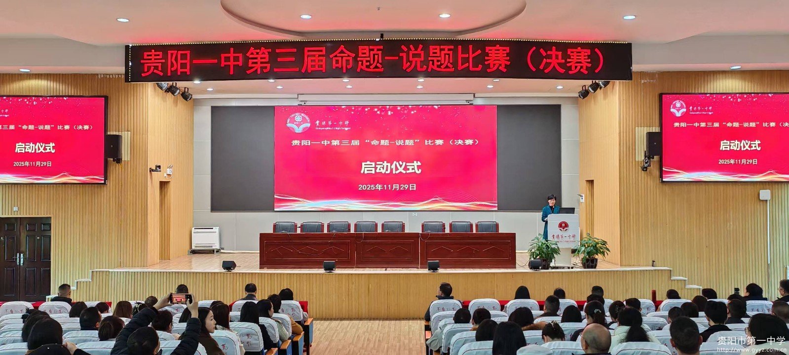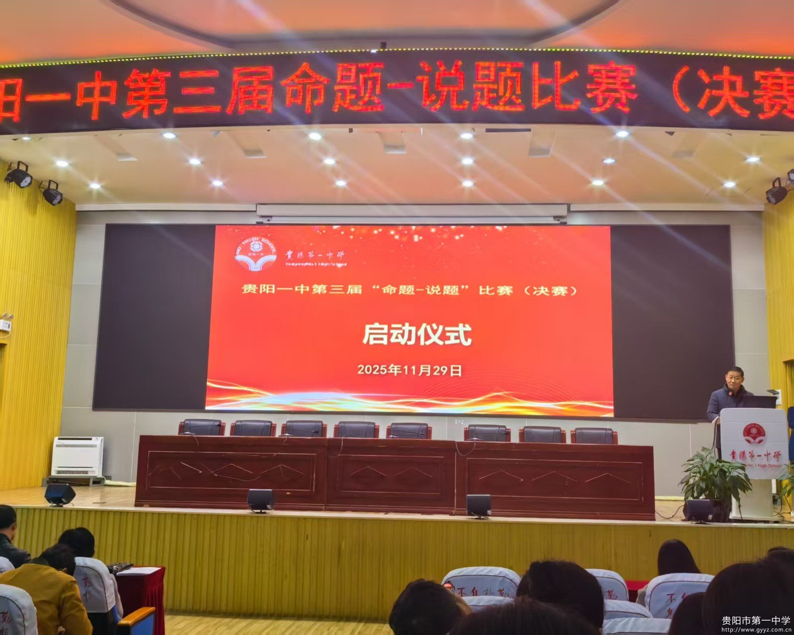 为深化“教学评一体化”改革,提升教师命题专业素养,助力县域普通高中高质量发展,2025年11月29日上午,贵阳一中成功举办教育联盟“命题-说题”展示活动暨第三届高考学科“命题-说题”决赛。来自联盟学校的51名教师参加预赛,经过初评选拔,有30位教师成功晋级决赛。展示活动开幕式由贵阳一中副校长谭美金主持,党委书记陈章义致辞。