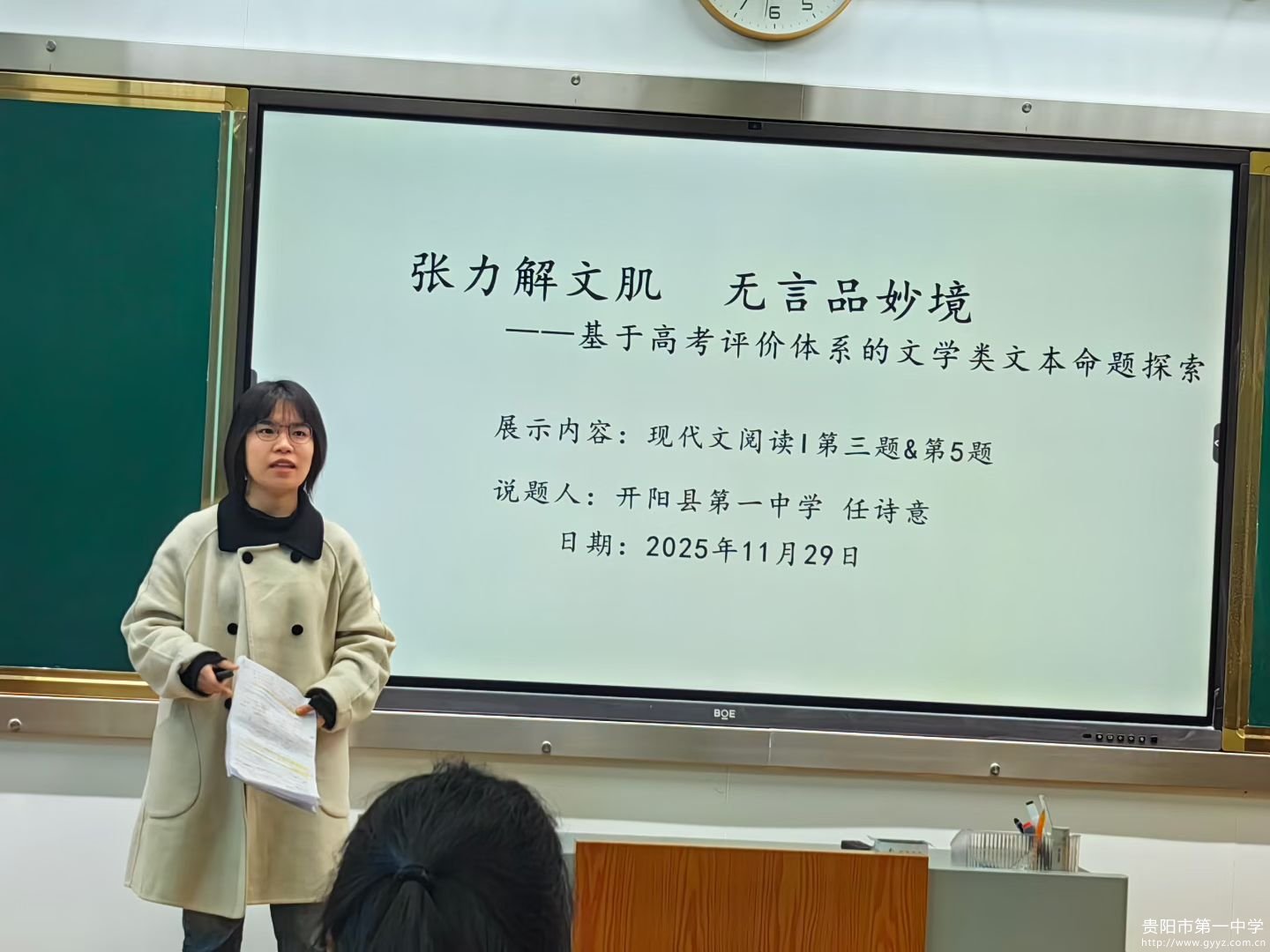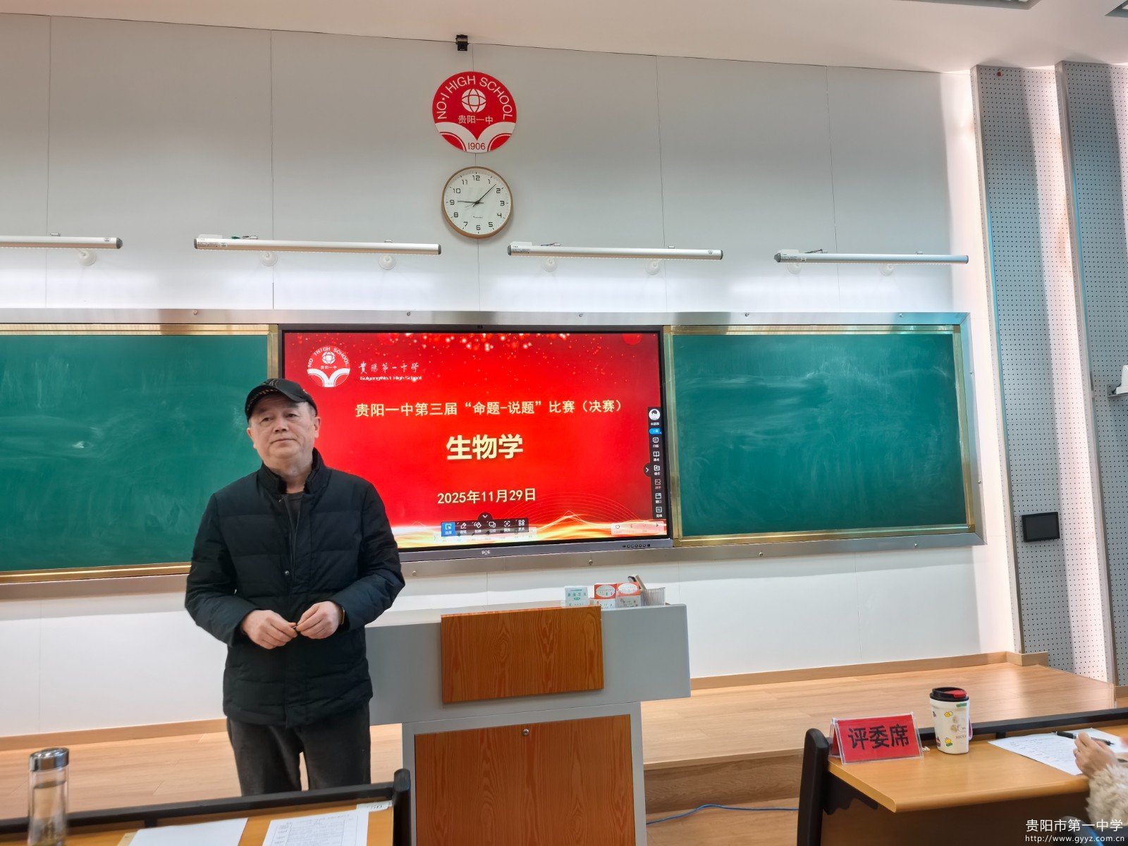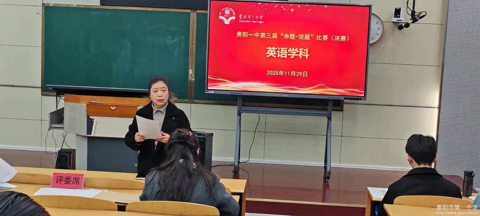 为深化“教学评一体化”改革,提升教师命题专业素养,助力县域普通高中高质量发展,2025年11月29日上午,贵阳一中成功举办教育联盟“命题-说题”展示活动暨第三届高考学科“命题-说题”决赛。来自联盟学校的51名教师参加预赛,经过初评选拔,有30位教师成功晋级决赛。展示活动开幕式由贵阳一中副校长谭美金主持,党委书记陈章义致辞。