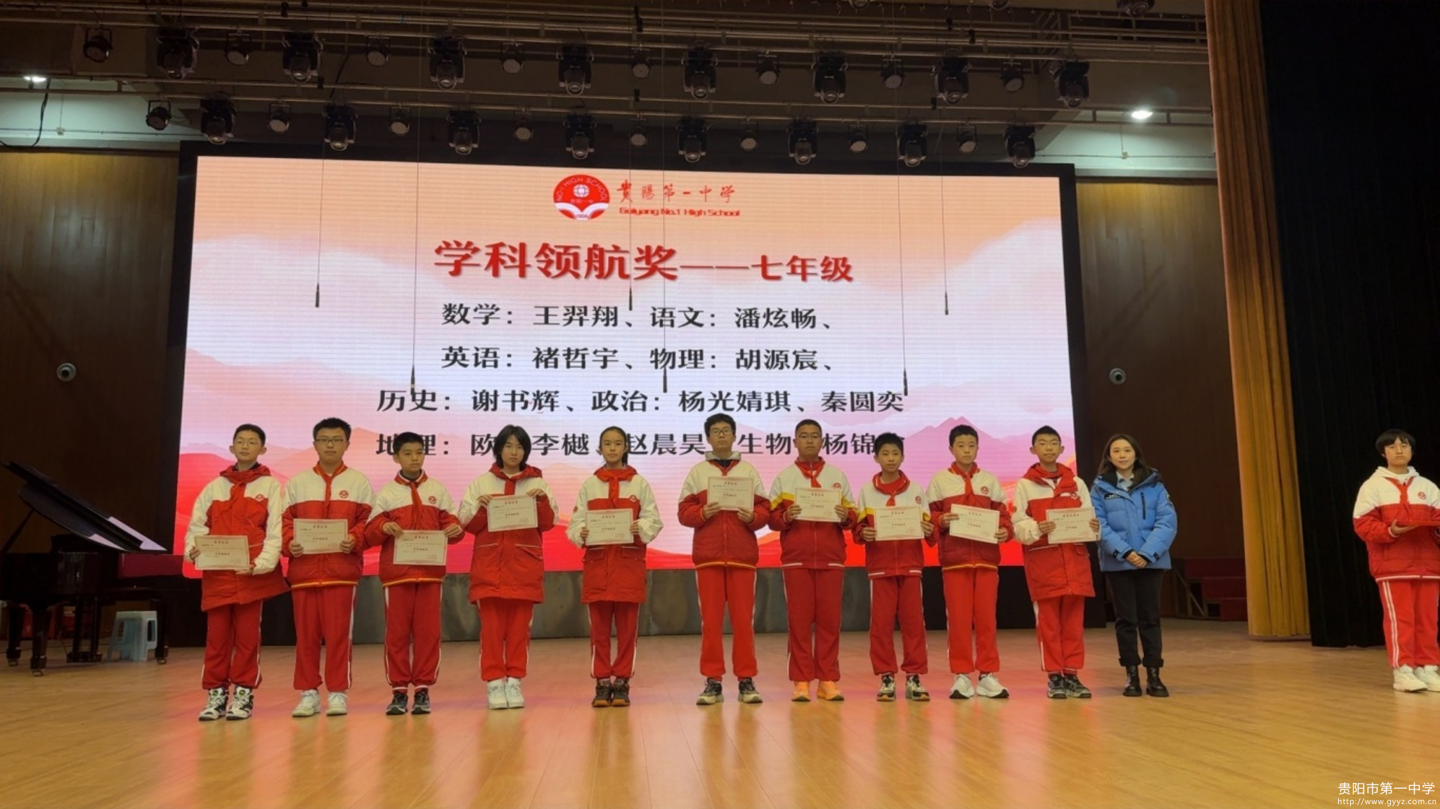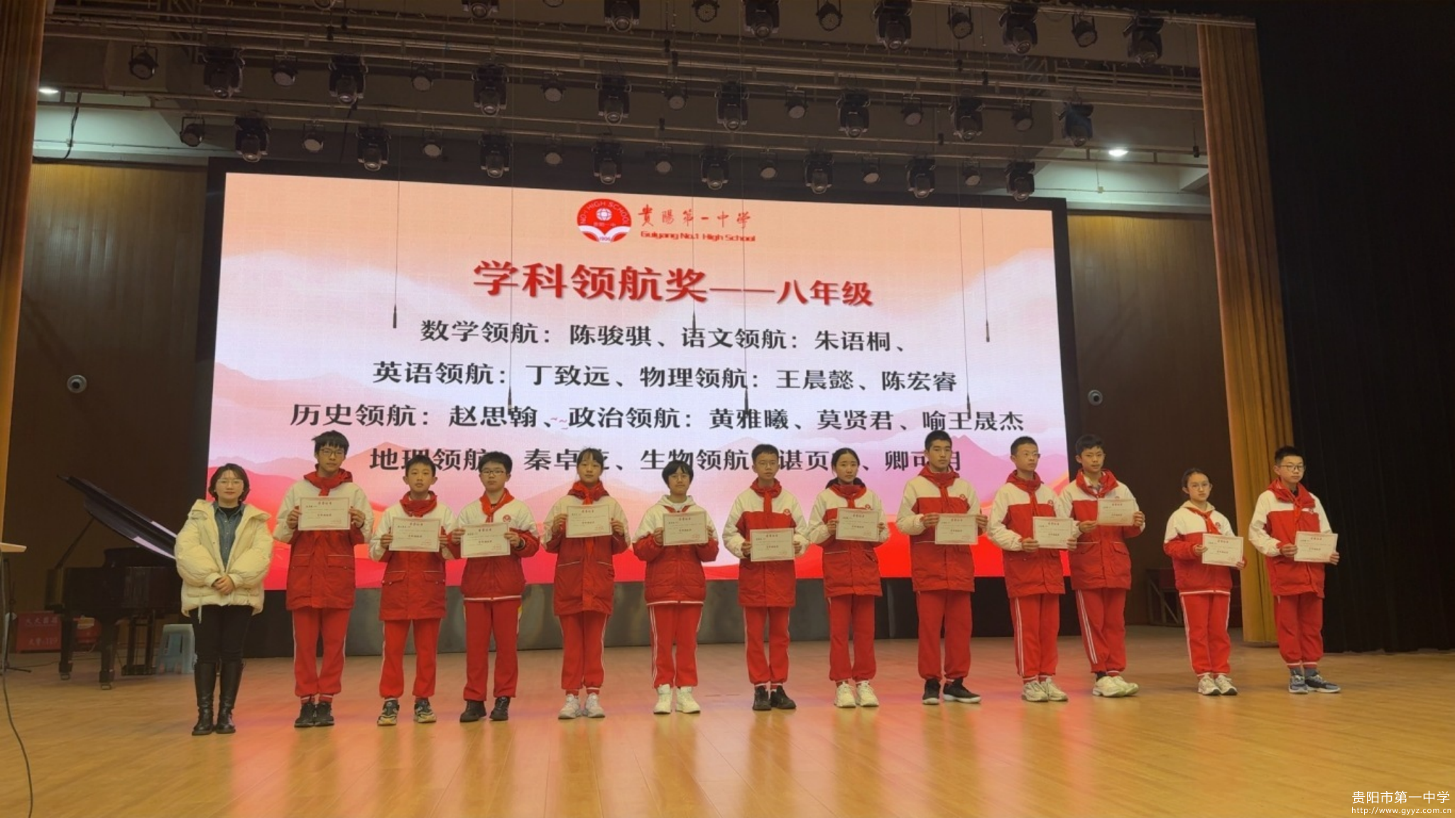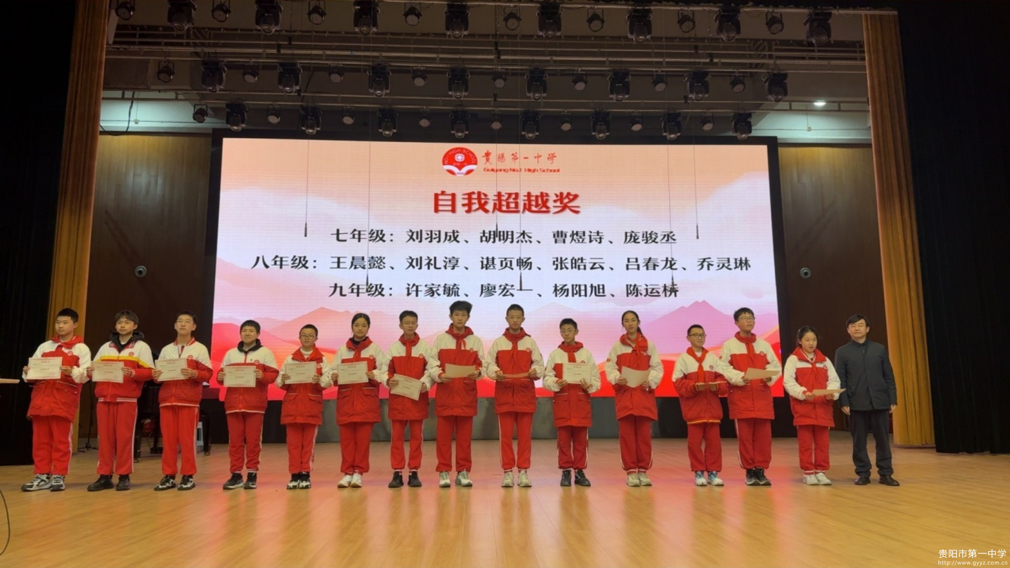 随后的表彰环节,则将“成长”的多元画卷生动铺陈开来。从八年级罗祥瑞、曹朗瑞同学在省级“贵青杯”爱国主义读书活动中荣获二等奖,展现阅读中的家国情怀与思想成长,到各年级涌现出的各类佼佼者——有实现显著跨越、荣获“自我超越奖”的奋斗者;有在特定学科领域独领风骚、获得“学科领航奖”的探索者;更有在综合素养上全面出众、被授予“学业标兵”的卓越者。每一阵掌声,都是对过往付出的肯定,也是对身边榜样最直接的致敬。这份涵盖广泛、层次分明的表彰,生动诠释了“成长不息”的丰富形态。