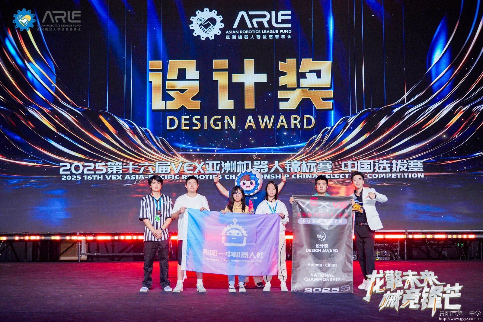 贵阳一中科创中心再传捷报——我校吴彦博、徐步含、张妙芊、浦寰钰四位同学在2025年第十六届亚洲机器人锦标赛中国选拔赛中勇夺设计奖(赛事排名第三),成功晋级VEX世界机器人锦标赛!这不仅是我校机器人竞赛的里程碑式突破,更标志着贵州省历史上首支晋级该赛事的队伍诞生,为贵州青少年科技教育写下浓墨重彩的一笔。
