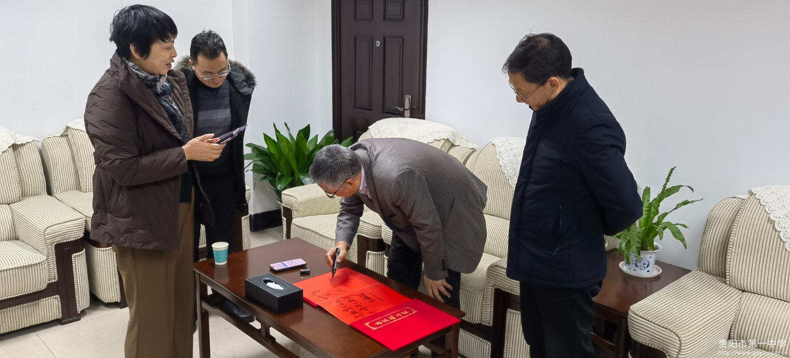 最后,柳卫平院士现场挥毫题词,留下“百年树人黔中地,逐梦星河赤子心”寄语,为本次交流走访留下珍贵纪念。