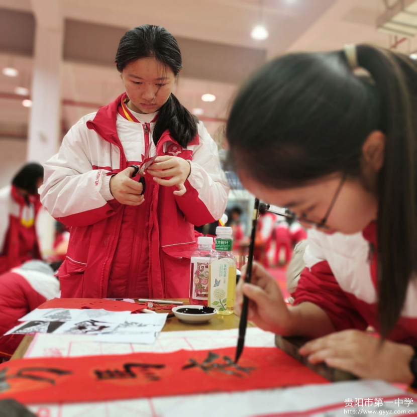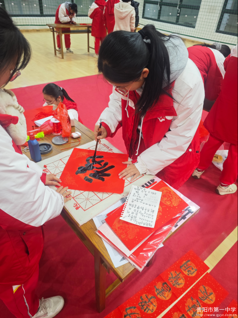 活动现场宛若一座流动的文化博物馆。墨香四溢的书法区内,学生们挥毫泼墨,一副副春联或苍劲有力,或娟秀清雅。“书为心画”,每一笔每一捺都凝聚着对汉字艺术的敬畏与传承。剪纸区域更是巧夺天工:学生们手持剪刀,红纸翻飞间,栩栩如生的生肖图案、寓意吉祥的传统纹样跃然纸上,展现了“以象寓意”的非遗智慧。