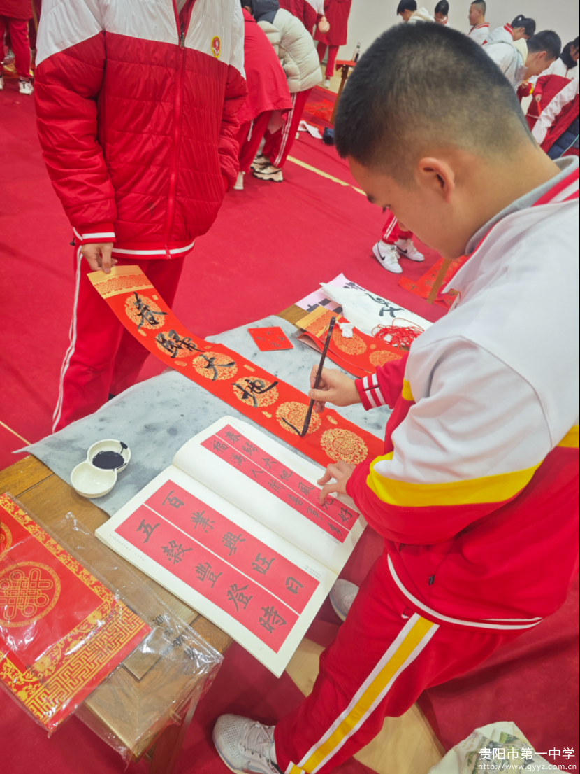 最具特色的是各学部文化主题的深度演绎。初中部以“笔墨童心”诠释传统新韵,在稚拙笔触中播种文化基因;高中部三个年级分别以“经典传承”“和谐校园”“砥砺前行”为主题,将儒家“修身齐家”理念与青春抱负完美融合;国际部“中西融汇”,汉字艺术设计与双语祝福卡相映成趣,彰显了“各美其美,美美与共”的文明对话精神。