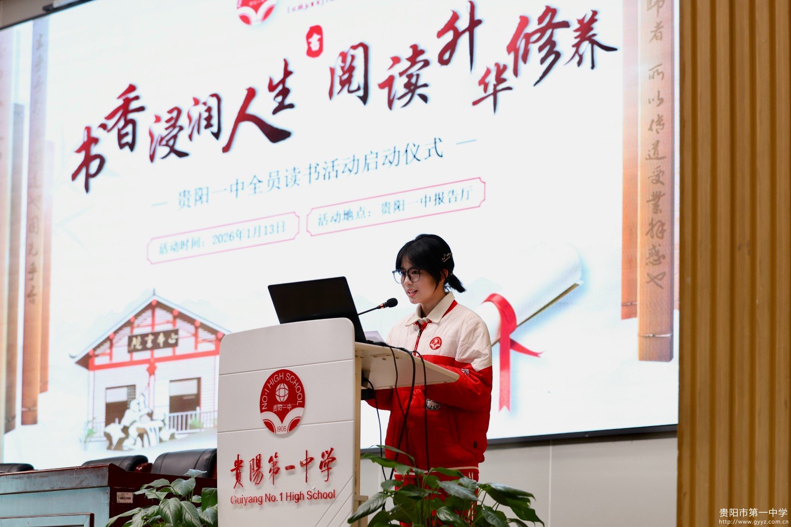 2026年1月13日下午,在贵阳一中报告厅举行以“书香浸润人生,阅读升华修养”为主题的全员读书活动启动仪式。学校领导班子成员,全体语文教师、高一高二学生代表及家长代表齐聚一堂,共赴书香之约,同启阅读新程。