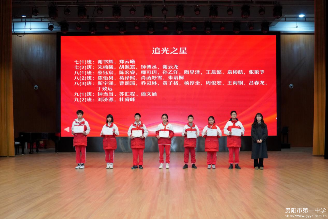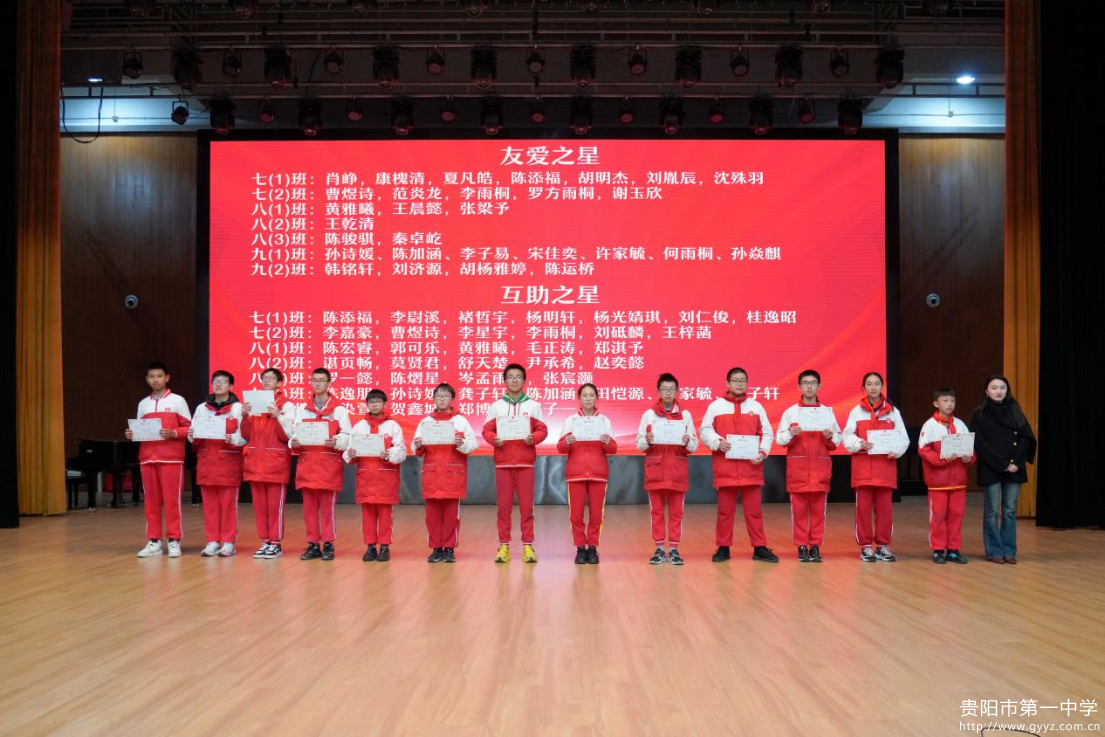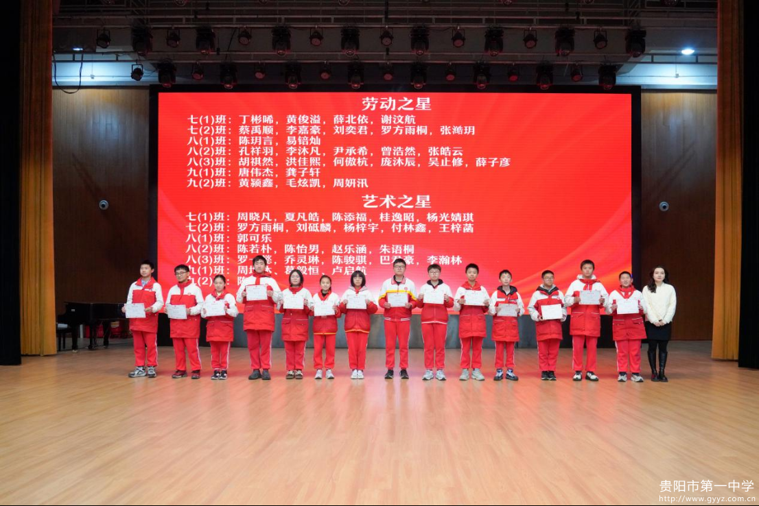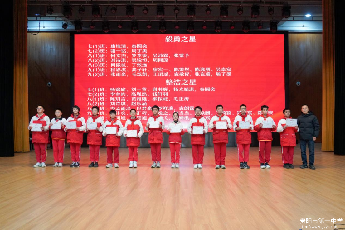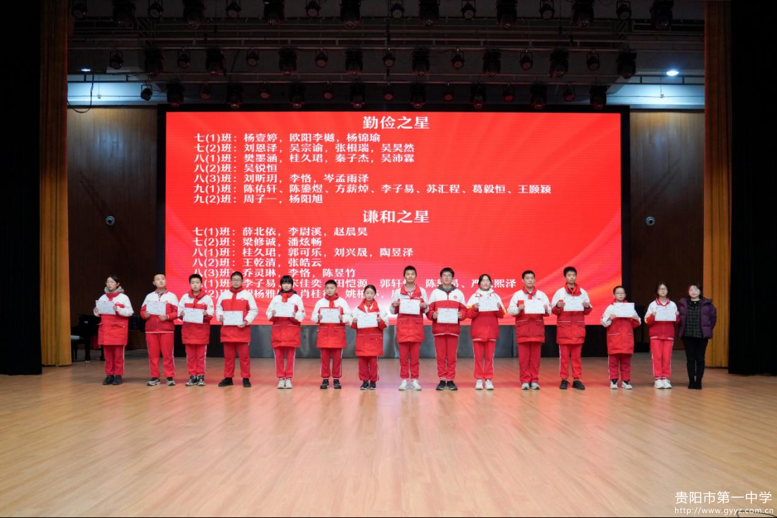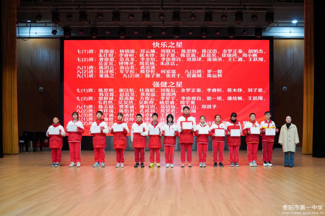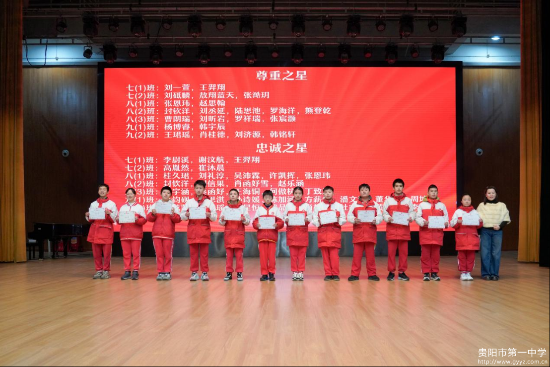 2026年1月16日下午,贵阳一中初中部2025-2026学年度第一学期总结大会于贵阳一中音乐厅成功举行。时光荏苒,耕耘有声,大会以 “逐梦铸佳绩・聚力向未来”为主题,全面回顾学生成长足迹,表彰先进榜样力量,凝聚师生奋进共识。初中部全体师生参与本次活动,大会由七年级(2)班李雨桐、八年级(1)班王晨懿、九年级(1)班宋佳奕主持。