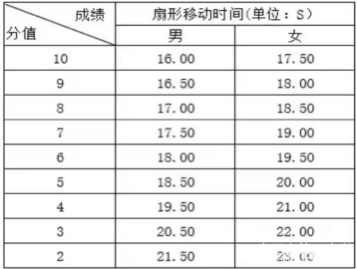 注:扇形跑素质考试路线图注:A点为一只球拍,从A出发,先捡1号球返回A点,并将球放在球拍上;再捡2号球返回A点,并将球放在球拍上;以此类推直至捡完5个球。
